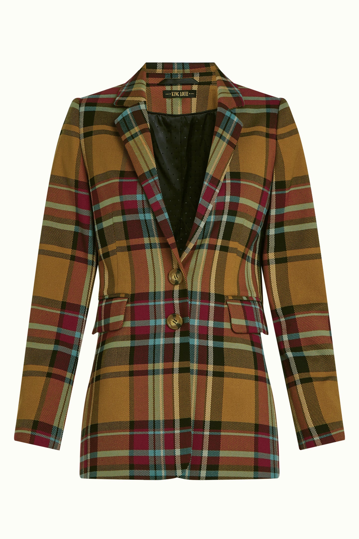 Blazer long à simple boutonnage, doté de poches à rabat sur le devant et orné d’un motif à carreaux intemporel.