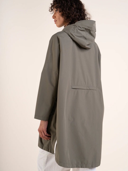 Cape de pluie kaki, coupe oversize – Idéale pour un look décontracté.
