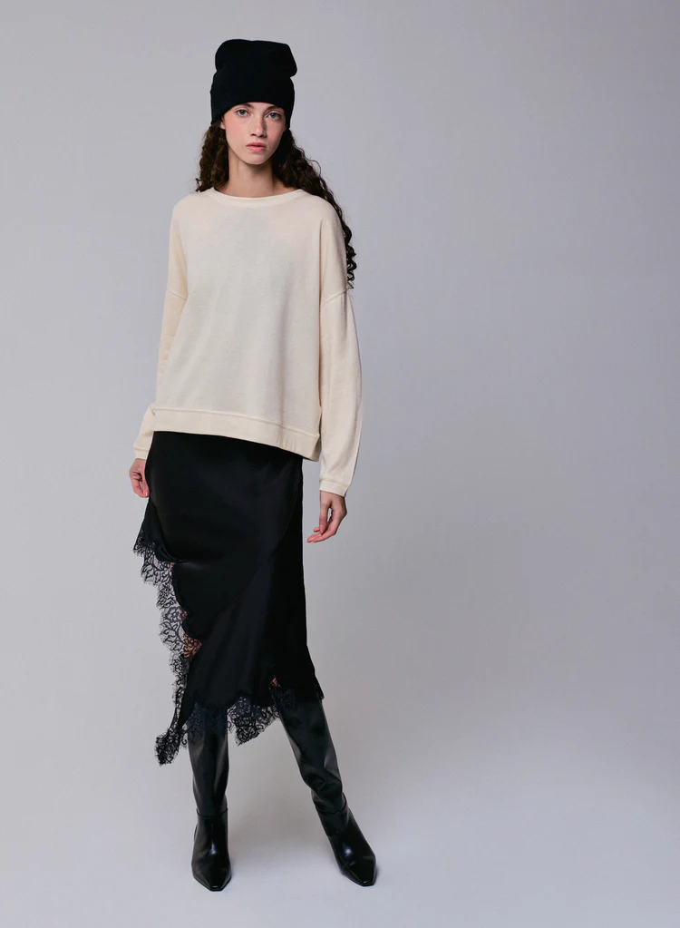 Sweat Col Rond Manches Longues en Coton organique / Cachemire, confectionné dans une matière naturelle, douce et confortable, idéal pour un usage quotidien.